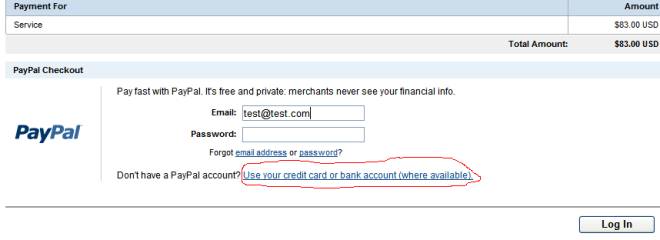 2. You will be redirected to the screen, where you can pay without PayPal account: